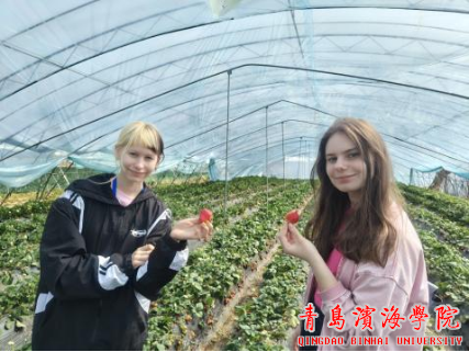 此外,学院还精心组织研学团近距离感受青岛城市魅力。在唐岛湾海滨栈道,师生们迎着海风漫步远眺,尽览滨海旖旎风光。市区游览中,奥帆博物馆、五四广场、海底世界、台东步行街及即墨古城等特色地标,让俄罗斯青年充分领略城市人文与自然风貌。行程中还安排了草莓采摘与农家乐体验,大家走进田间亲身劳作、现场品尝,在欢声笑语中沉浸式感受质朴鲜活的中国乡村生活。